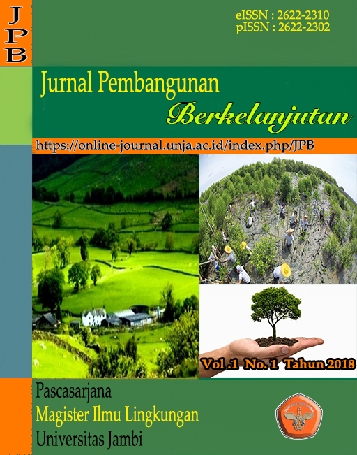 Vol. 8 No. 1 (2025)Journal of Sustainable Development is a scientific journal published by the Masters Program in Environmental Studies, Postgraduate University of Jambi and is used as a media for dissemination of research results in the form of full research articles, short communication and literature review on aspects of the Environmental Sciences.