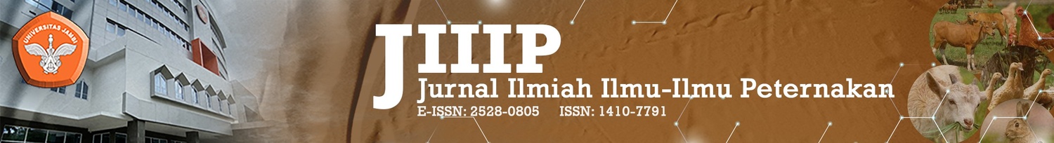 The research on substitution of corn and soybean cake with fermented soybean husk by Aspergillus niger was done on 100 DOCs strains MB 202. Completely Randomizing Design (CRD) was used in five treatments: 0, 10, 20, 30 and 40% of fermented soybean husk by four replications. Observed variables were the retentions of dry matter, organic matter and crude fiber. Data were analyzed with analysis of variance continued by Duncan Multiple Range Test. The results showed that substitution of corn and soybeans cake with fermented soybean husk had no significant effect (P>0.05) on the retention of the dry matter but significantly (P<0.05) affected retentions of organic matter and crude fiber. In conclusion, the fermented soybeans husk can be used as a substitute for corn and soybean cake up to 40% of broiler feed.