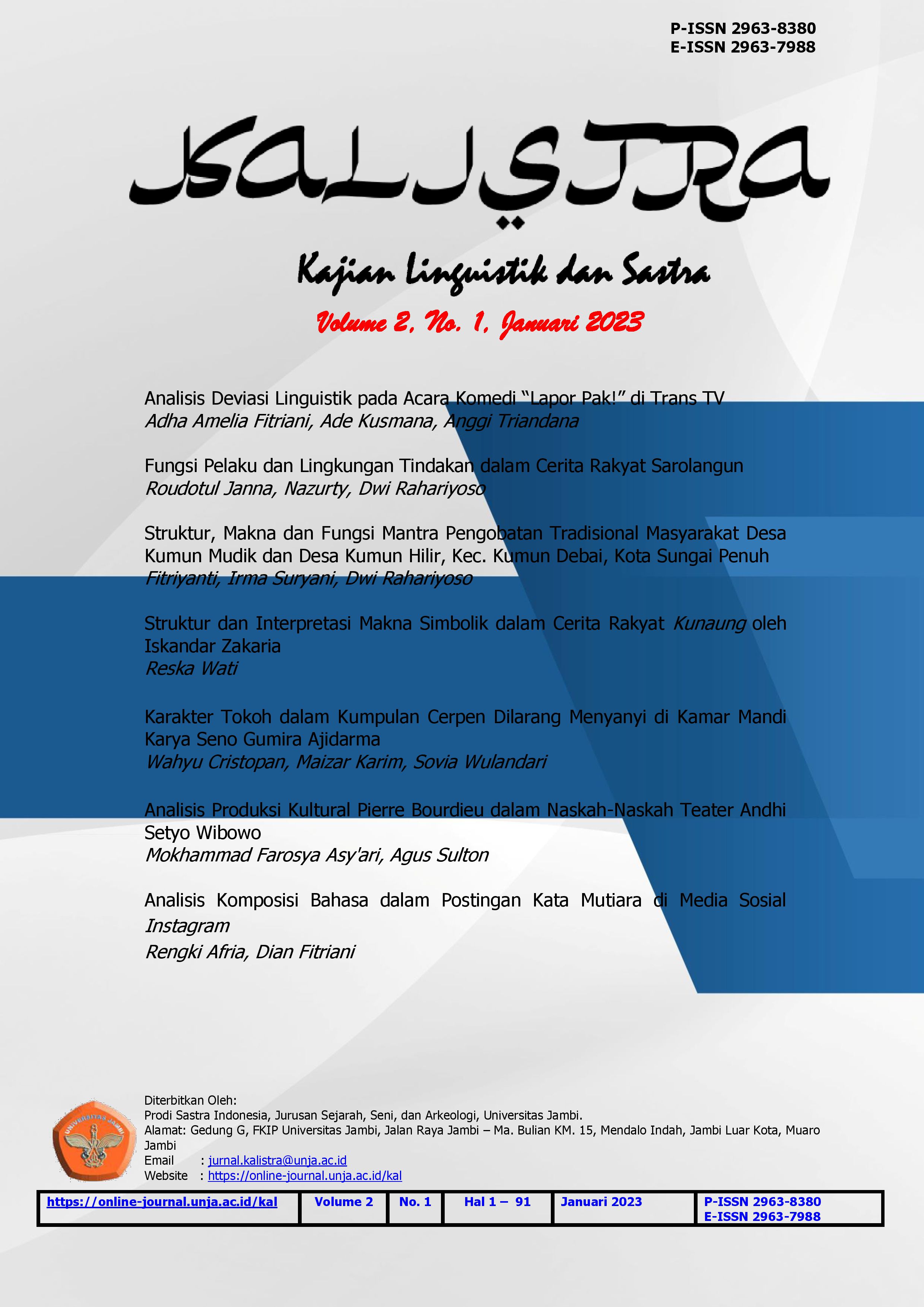 Fungsi Pelaku dan Lingkungan Tindakan dalam Cerita Rakyat Sarolangun